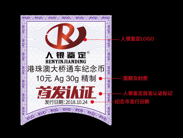 “人银鉴定”致力于为广大收藏爱好者提供安全可靠、优质高效的鉴定评级服务,为满足市场需求,特推出纪念币“首发认证”业务,客户将购买到的“首发纪念币”提交至人银鉴定中心,经鉴定认证后的纪念币采用“首发认证”特别设计版标签,密封于封装盒内返还客户。